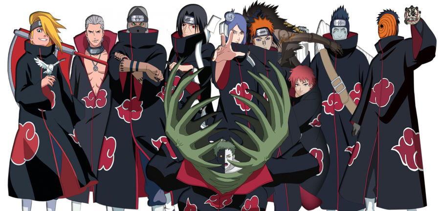 Fue en sus comienzos, una organización que buscaba encontrar la paz atraves de medios pacíficos fundada y liderada por Yahiko, esa organización estaba molestando a los altas cúpulas de la aldea, y eso proporciono la muerte de Yahiko, es ahí que quien asume el liderazgo de Akatsuki es Nagato cambiando los métodos de la organización pero no el objetivo dejaron de ser una organización pacifica a ser una que desea dominar el mundo. Su plan era juntar lo nueves biju y manejarlos a su voluntad, para asi entonces empezar a crear guerras para así ganar una reputación y convenciendo a todos los países a depender de ellos, por lo que serían el único mercado del mundo podrían conquistar los otros países. Ese era el objetivo que quería Nagato (Pain), pero por detrás de ellos estaban siendo usados por Tobi (Obito Uchija) que quería emplear de Madara Uchija, el Plan ojo de luna que consiste en juntar los 9 biju, para así poder liberar a Jubi, y convertirse en jinchuriki de Jubi para así poder usar un Tsukiyomi infinito en la luna para poner a todos dentro de un genjutsu para poder controlar el mundo.